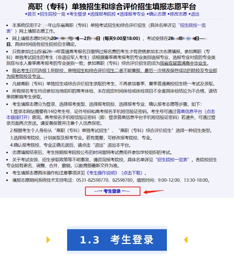 通過省招考院網(wǎng)站或招生院校網(wǎng)站鏈接,打開“高職(??? 單獨(dú)招生和綜合評價招生填報志愿平臺”主頁,如下圖: