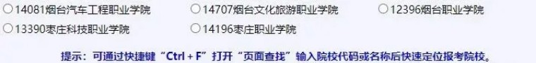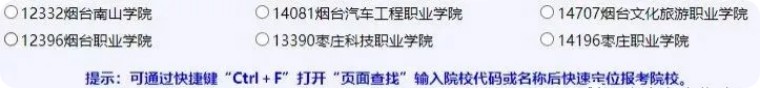 這里按院校名稱順序排列顯示所有招生院校。因院校數(shù)量較多,如上圖提示:可通過快捷鍵“Ctrl+F”打開“頁面查找”輸入院校代碼或名稱后快速定位報考院校。