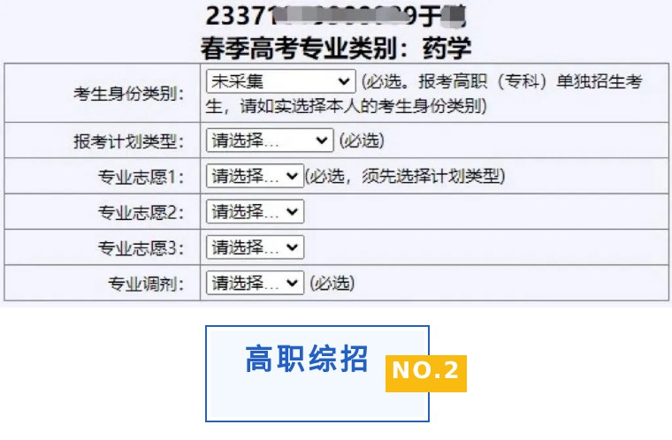 若考生報考高職(??? 綜合評價招生,其報考專業(yè)選擇頁面如下: