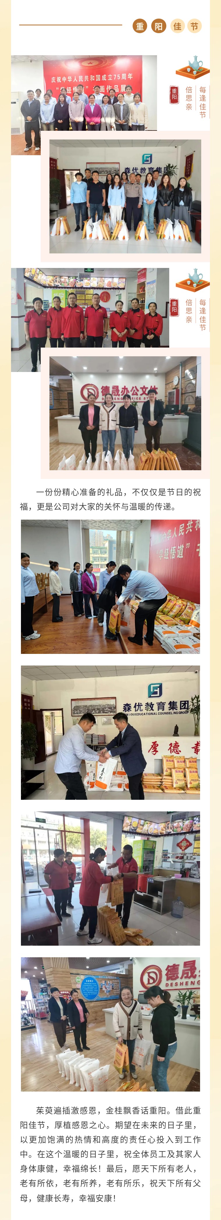情系桑榆未晚晴,重陽慰問暖人心——山東森優(yōu)教育集團為全體員工父母發(fā)放暖心福利。