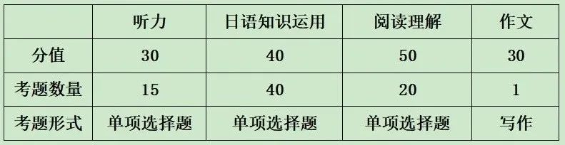 此部分1道題,30分。日語作文實行扣分制,有錯誤的才扣分,其他表達只要符合題意,原則上不扣分,但日語作文主要是人工閱卷,希望考生平時多練,提高日語寫作水平和書寫認(rèn)真。
